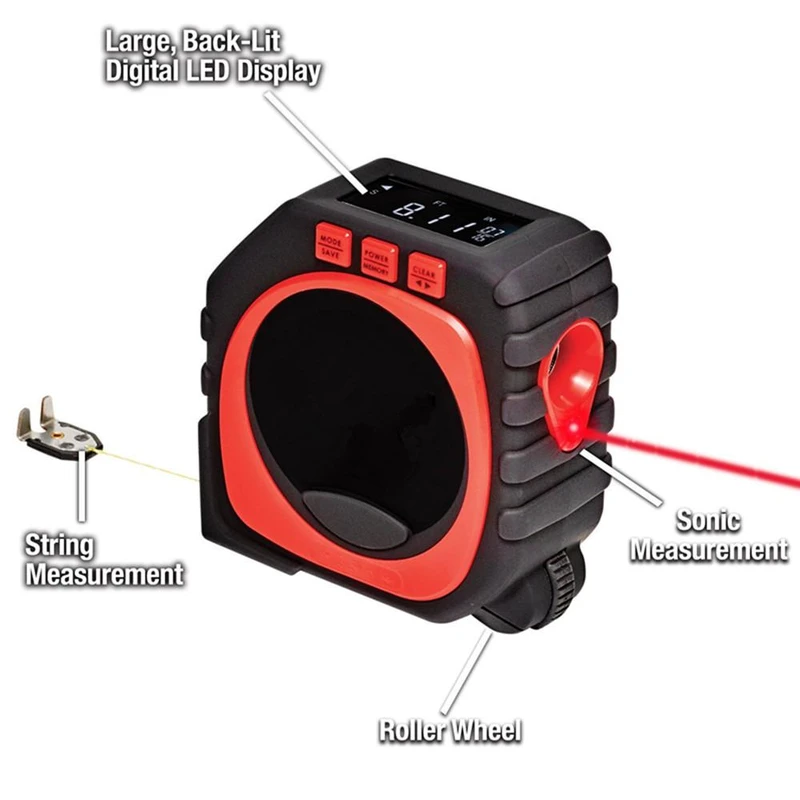 Dieses digitale Maßband verfügt über 3 verschiedene Messmodi, um die genauesten Ergebnisse zu erzielen. Der Roll-Modus kann jede gekrümmte Oberfläche oder unregelmäßig geformte Objekte messen, indem Sie einfach das angebrachte Rad auf Länge oder Entfernung rollen. Es ist so einfach, dass Sie es mit nur einem machen können Hand! Mit dem Flexkabel können Sie einfach und genau um Objekte herum messen! Keine zerknitterten Metallbandmaße mehr, die Ihnen keine genaue Messung ermöglichen! Mit dem Flexkabel können Sie alles messen, was ohne Einschränkungen abgerundet ist und für lange und schwer zugängliche Bereiche da ist der Lasermodus!