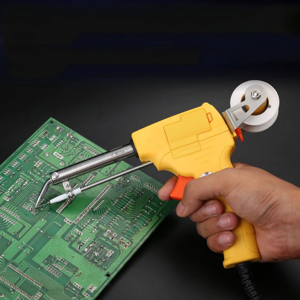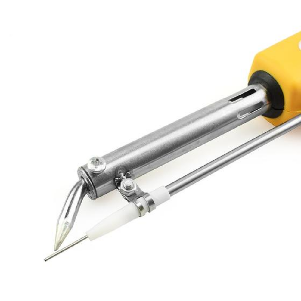 Einführung des Auto Feed Lötkolbens, des Lötkolbens, der mit einem Zinndrahthalter sowie einem Zinndrahtzuführer geliefert wird. Wenn Sie den Auslöser am Lötkolben drücken, drückt der Mechanismus im Lötkolben den Lötdraht heraus und bietet Ihnen so eine perfekte Steuerung für den Lötdraht.