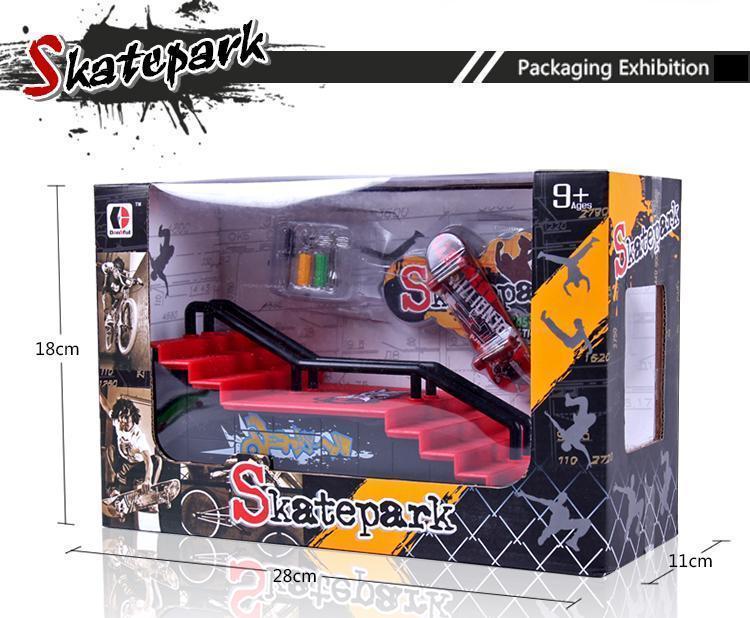 - 1 x Finger Skateboard Park Ramp + 1 x Finger Skateboard+1 set of tools