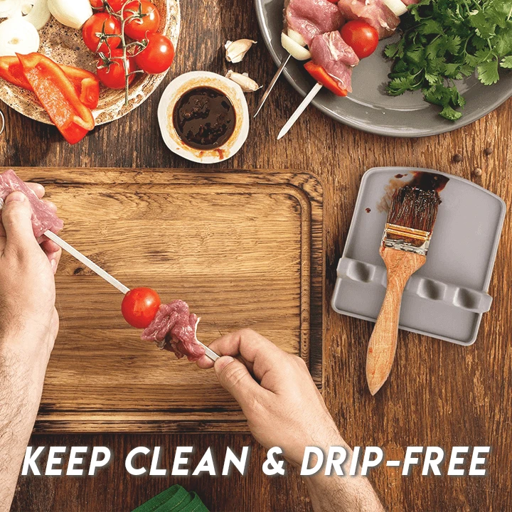 The raised notches offer a place for up to 4 cooking utensils at once and can even hold your spring-tongs in place! The raised edges keep spills contained on the rest, and not on your countertop.