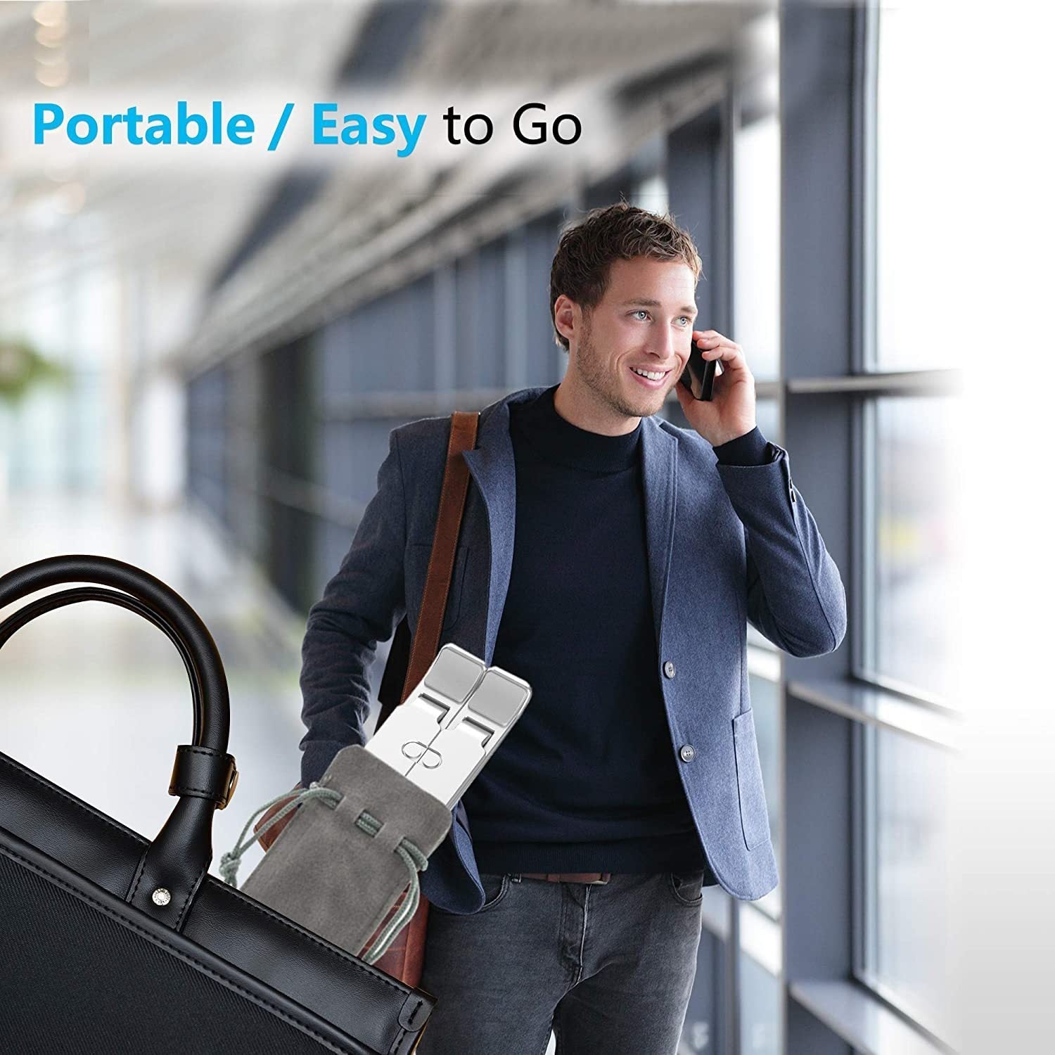 - Kompakt, leicht und faltbar: Leicht, nur 200 Gramm mit High Premium Aluminium Konstruktion. Gefaltete Größe nur mit 8 mm Dicke. Mit der Tragetasche können Sie sie bequem überall hin mitnehmen, wenn Sie geschäftlich unterwegs oder auf Geschäftsreise sind.