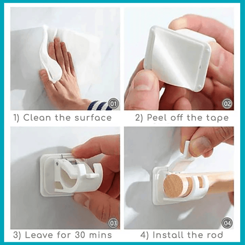 - Die selbstklebende Stangenhalterung kann ohne Nägel direkt geklebt werden.